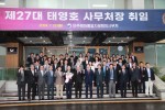 앞에서 좌측으로 김관용 수석부의장(일곱번째), 태영호 사무처장(여섯번째)이 취임식을 마치고 현관에서 단체기념사진을 촬영하고 있다(출처 ; 대한행정신문) - 민주평화통일자문회의, 제27대 태영호 사무처장 취임식 가져 - 국민과 함께 자유민주주의에 입각한...