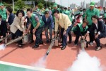 15일, 중랑천 제1체육공원에서 진행된 동대문구 새마을 방역봉사대 발진식에 참석한 유덕열 동대문구청장이 방역봉사대원과 함께 방역기를 시운전하고 있다. 동대문구(구청장 유덕열)는 15일 오전 10시, 중랑천 제1체육공원에서 ‘2018 새마을 방역봉사대 발진식’을 열고 여…